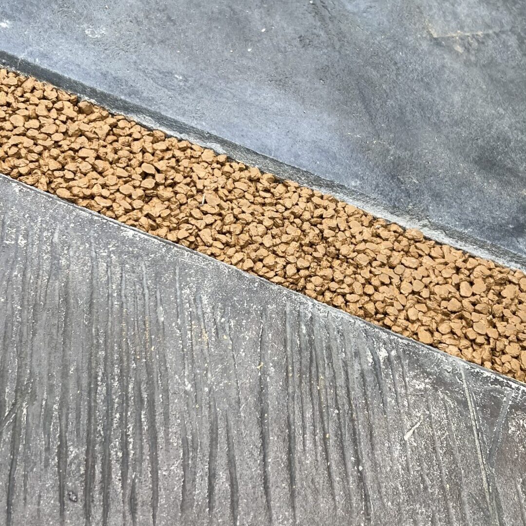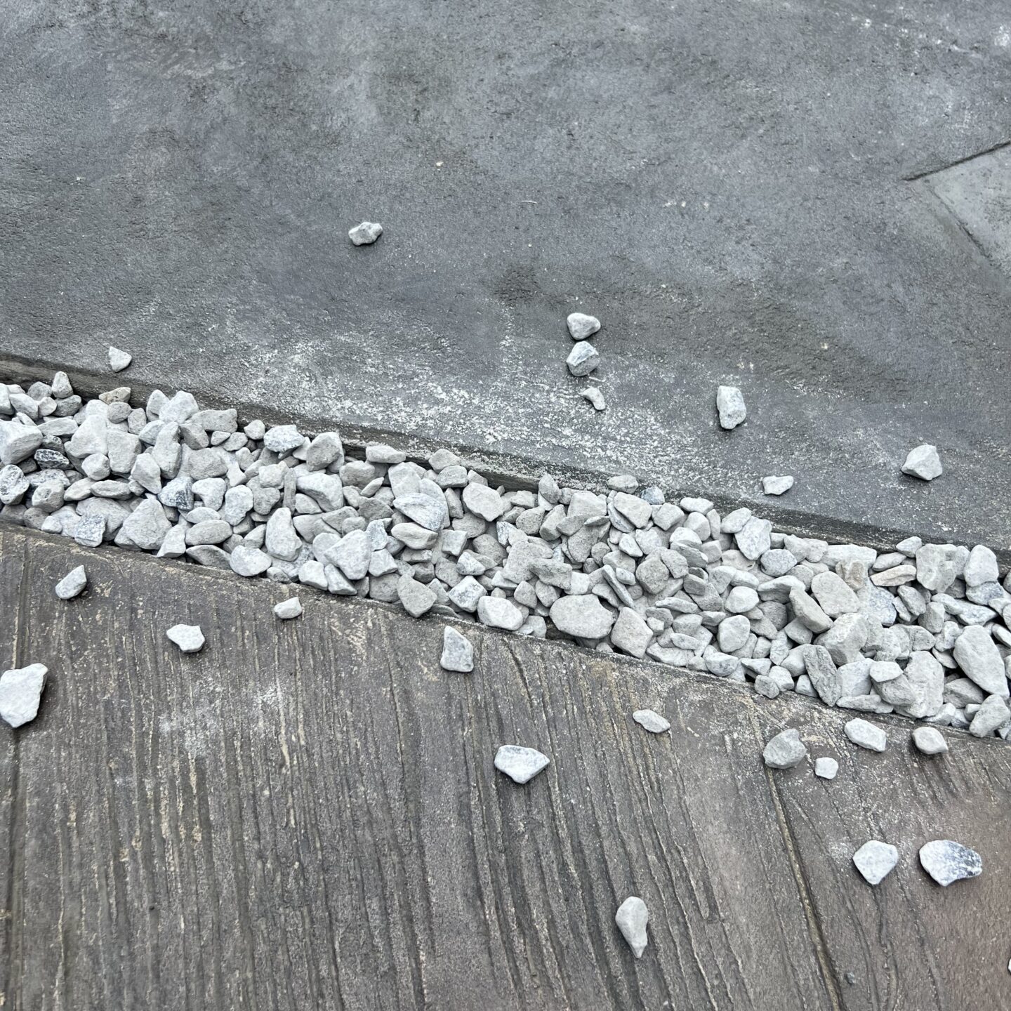 遊歩道や犬走りのコンクリート砂利目地(コンクリートとコンクリートの隙間)の砂利が歩くたびに飛び散ってしまいます。